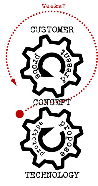 This might be you. This might be some technical type. Every Jobs has his Wozniak, to whom he proposes an idea and from whom he might hope for a working prototype. This build cycle might try something out, see if it works, feed this back into the concept, and take another try. This cycle might look like this.
